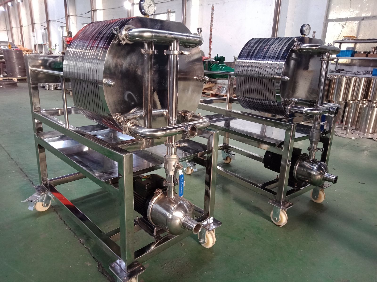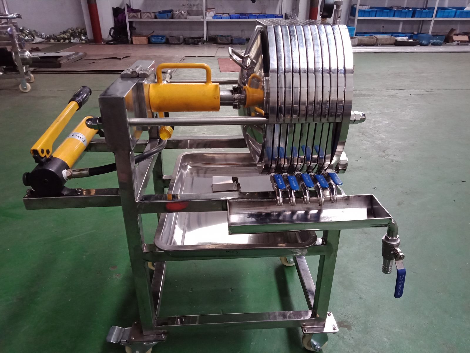 本機為不銹鋼多層板框壓濾機,適用于濃度50%以下粘度較低,含渣量較少的液體作密閉過濾以達到提純,滅菌、澄清等精濾、脫活性碳、除微粒、半精濾的要求,直接選用微孔濾膜,可不經(jīng)微孔薄膜過濾器過濾可達到無菌過濾之目的)。本機過濾面積大,流量大,適用范圍大,所以在制藥、化工、食品等行業(yè)有廣泛用途,應(yīng)用在制藥廠針劑藥液之過濾,效果甚佳。