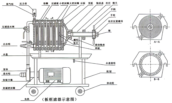 主要用途:本機廣泛應用于制藥、化工、食品、飲料、水處理、釀造、油墨、石油、印染、環(huán)保等行業(yè),是各類液體過濾,澄清,提純處理的理想設備。特別使用于強酸堿物料過濾,本機采用優(yōu)質(zhì)硅膠及氟膠密封圈密封,與一般壓濾機不同。可用十幾微米厚的耗材,壓緊即可。